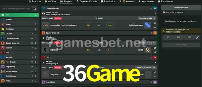 O 36Game oferece uma grande seleção de opções de apostas em e-sports com probabilidades competitivas